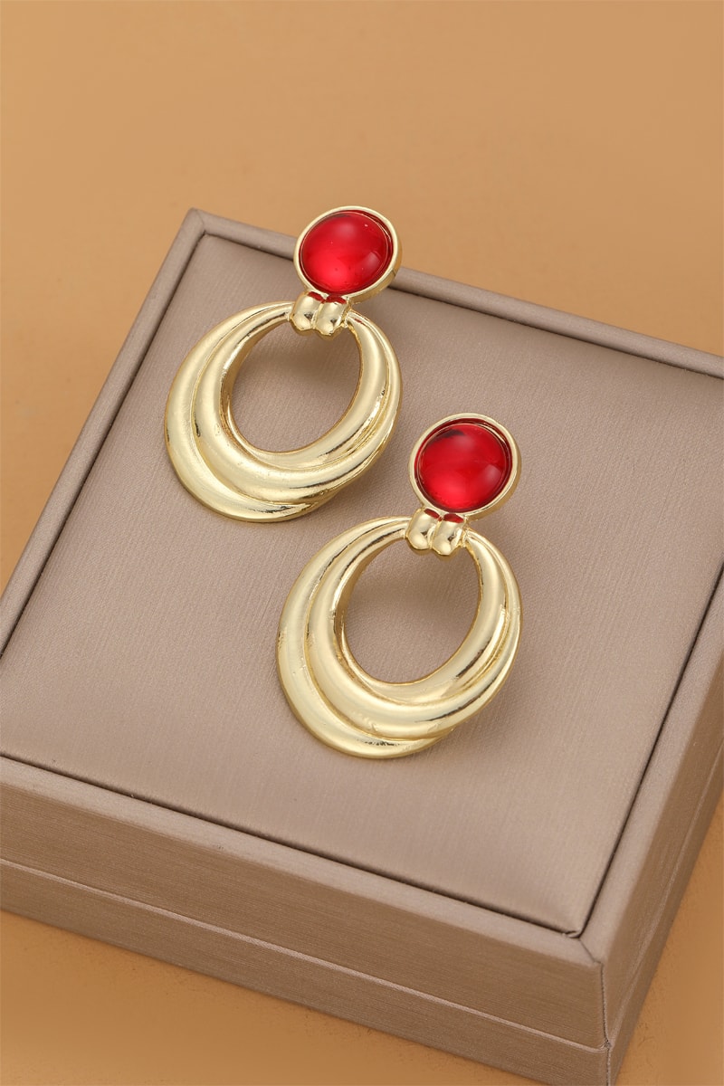 Boucles d'oreilles pendantes en plaqué or jaune serties de cristaux.