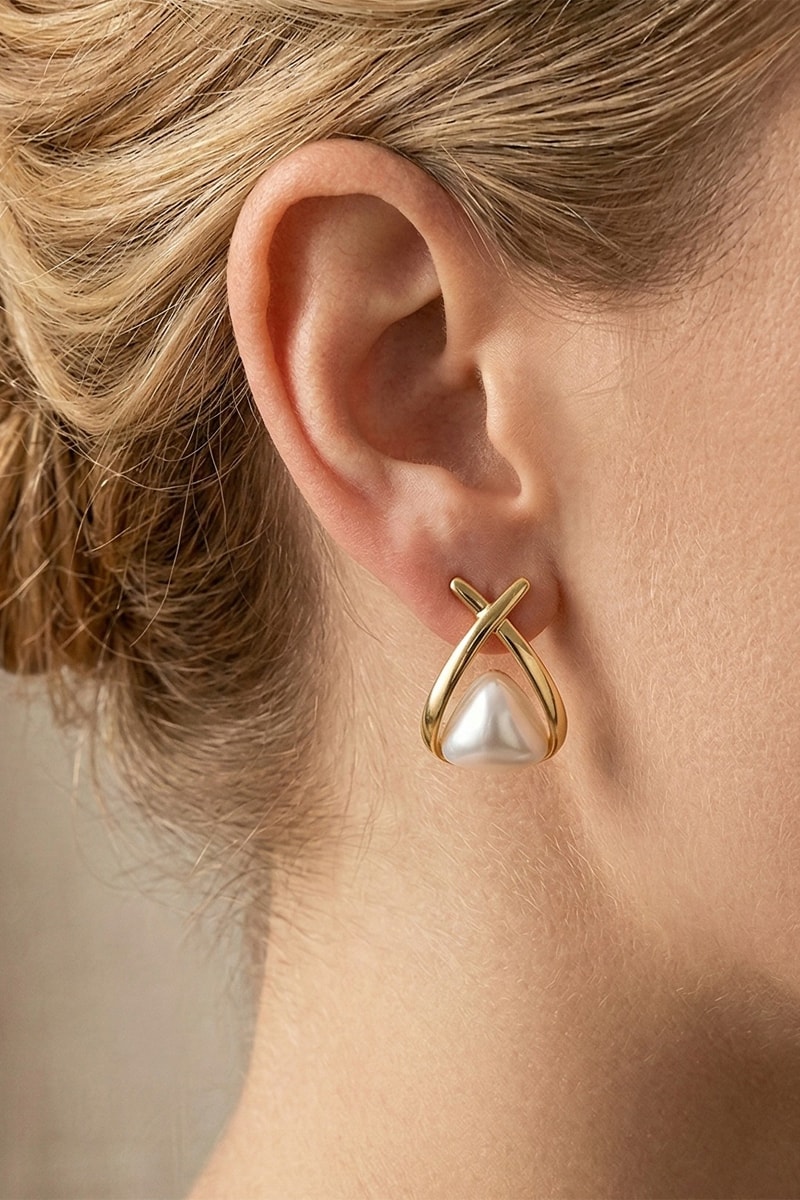 Puces en plaqué or jaune serties d'une perle d'imitation.