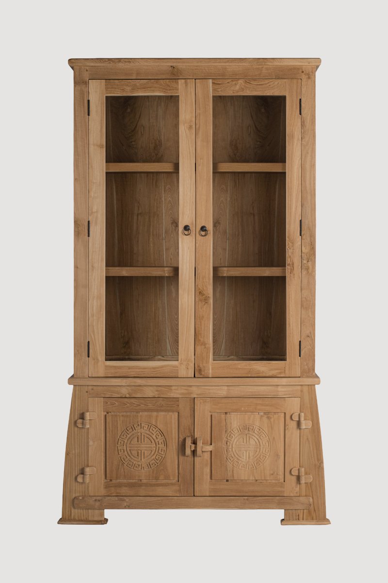 Vitrine 4 portes en teck - 109 x 186 x 42 cm