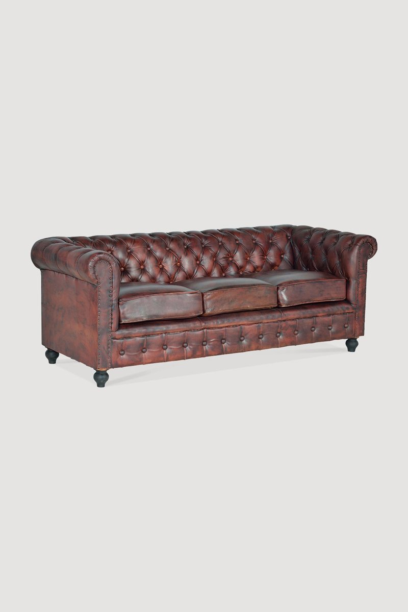 Canapé 3 places - Marron - Cuir vieilli