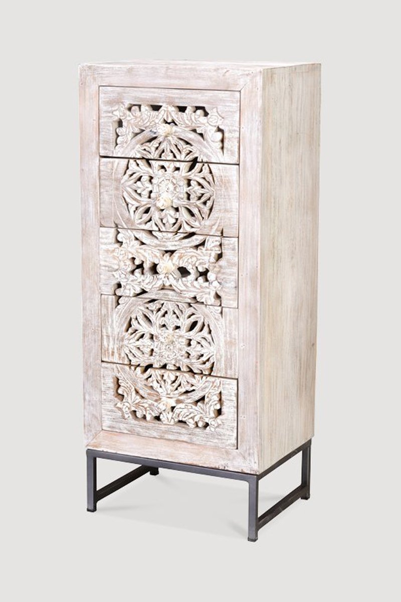 Chiffonnier 5 tiroirs en bois de manguier - Blanc vieilli - 45 x 35 x 106 cm