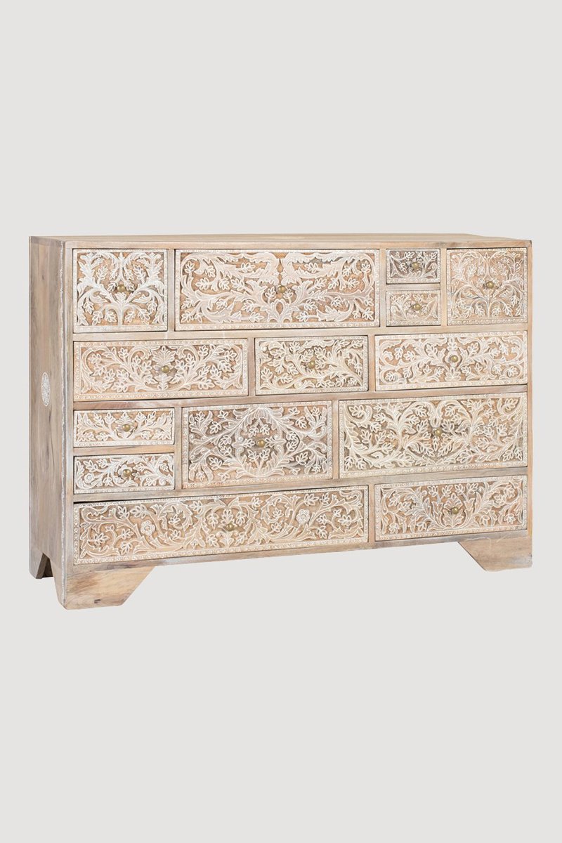 Commode 14 tiroirs en manguier - 115 x 80 x 36 cm