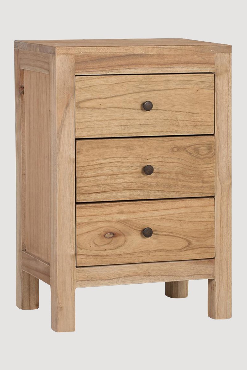 Table de chevet 3 tiroirs en bois de mindi - 45 x 67 x 30 cm