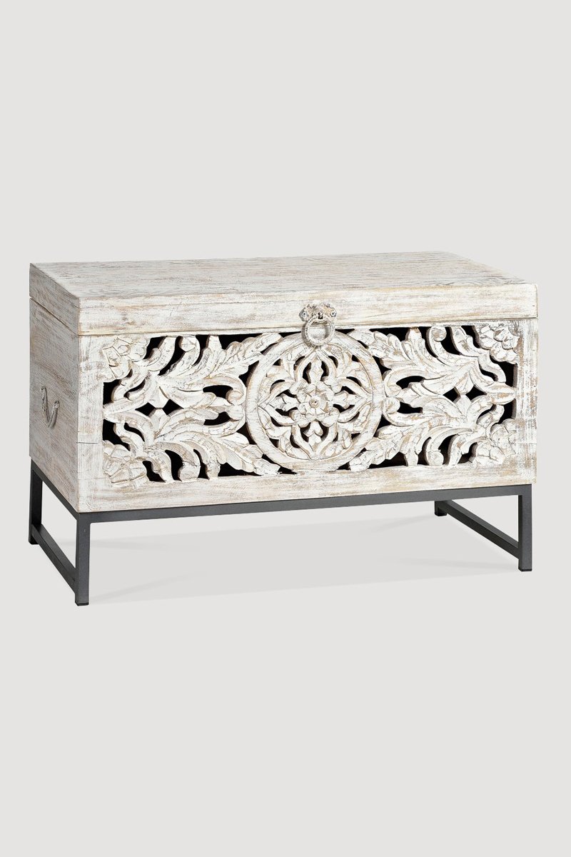 Coffre - Blanc - Structure en bois de manguier - 80 x 40 x 50 cm