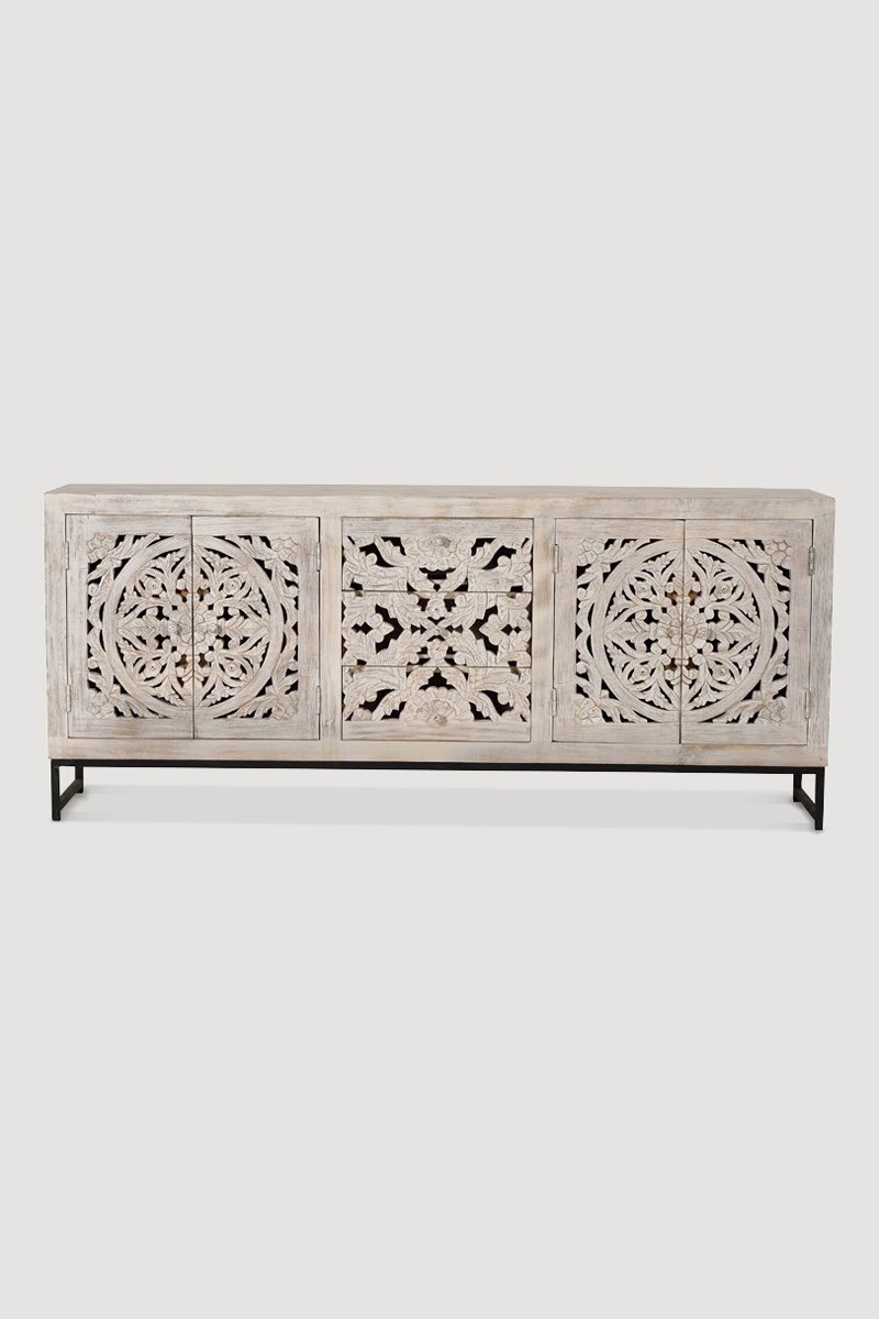 Buffet 4 portes - Naturel et noir - Structure en bois de manguier - 190 x 38 x 81 cm