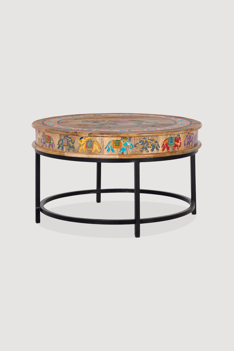 Table basse en bois de manguier - Naturel et multicolore - 46 x 78 x 78 cm