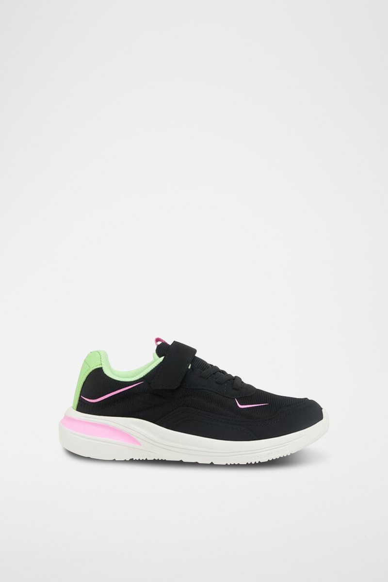 Fermeture à lacets et par scratch.