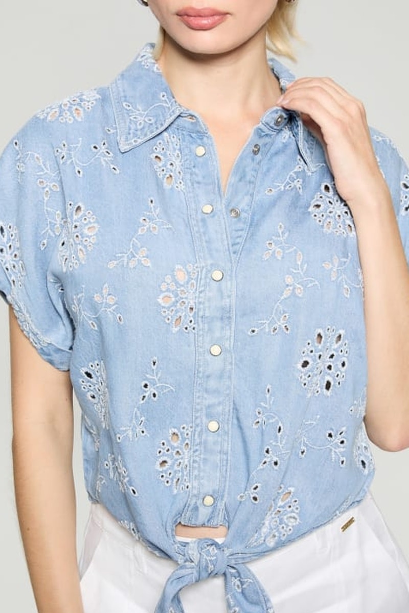 Chemisier en jean et en broderie anglaise Brigitte - Bleu clair - Guess