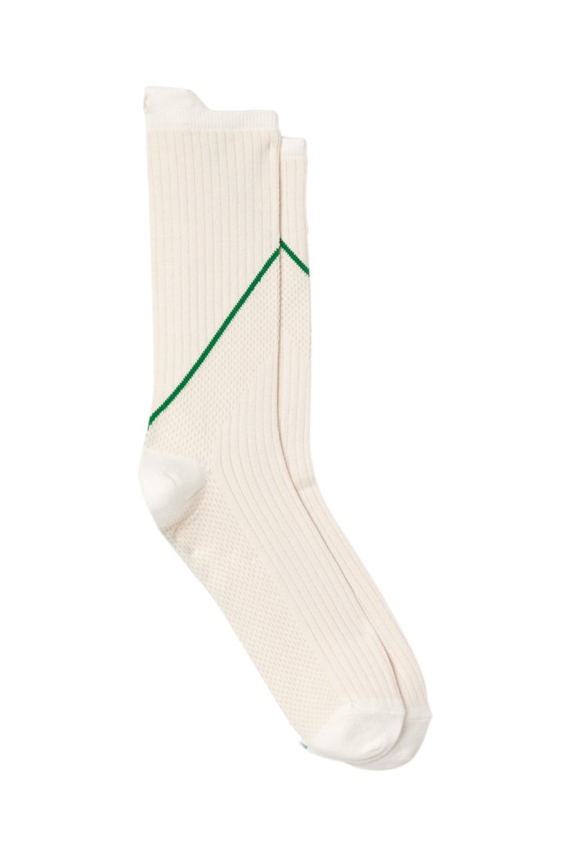 Motifs à rayures, maille ajourée et côtelée sur la tige.