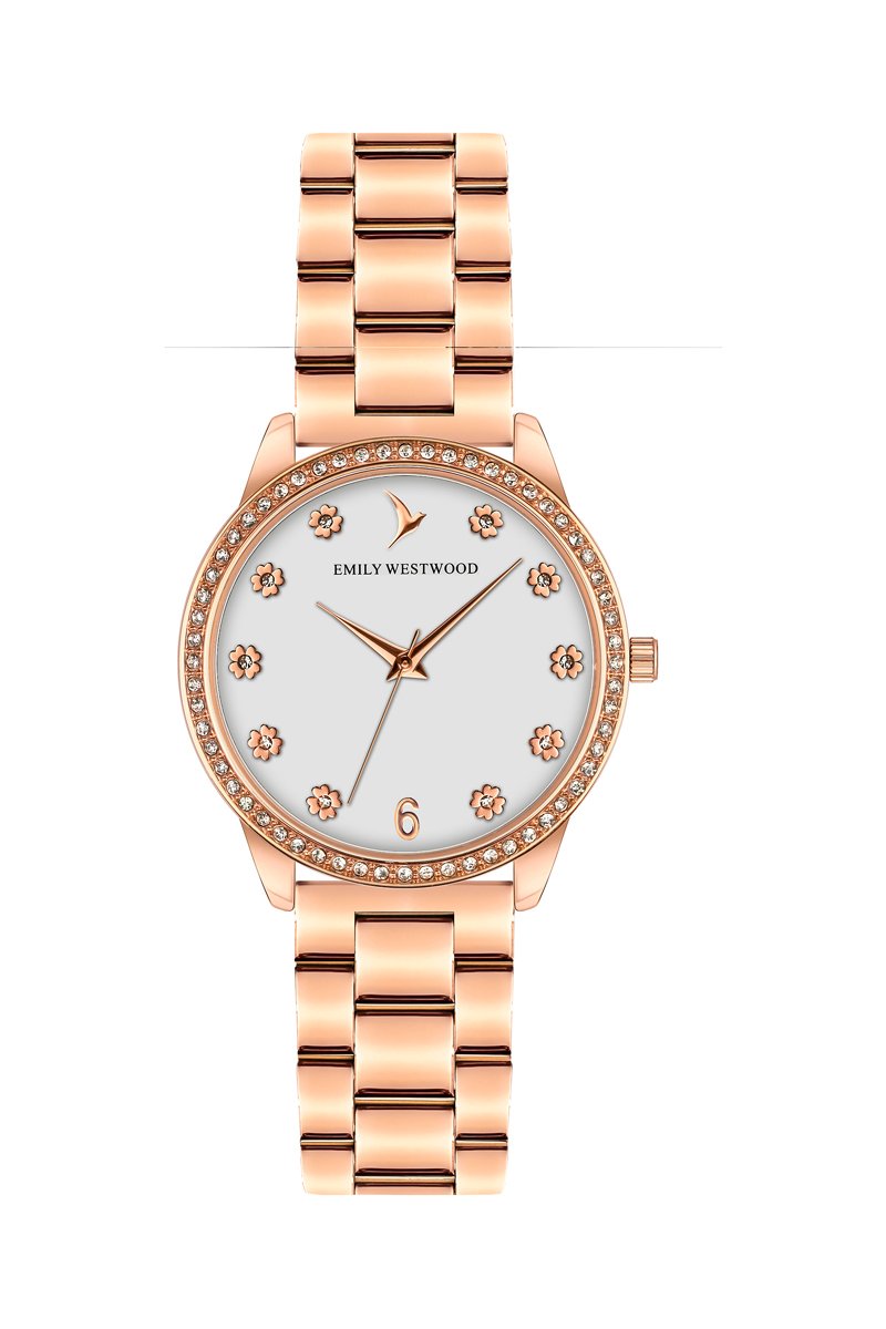 Montre à quartz en métal - Doré rose et blanc - Emily Westwood