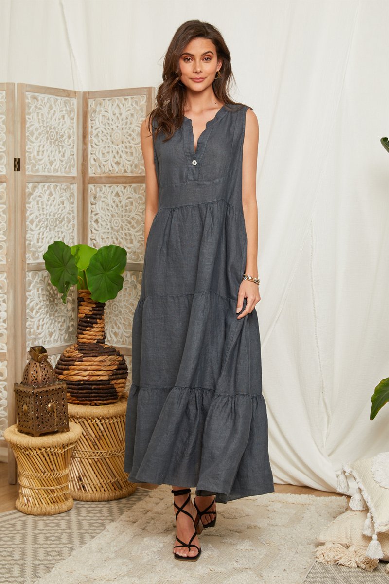 Robe longue en lin - Anthracite