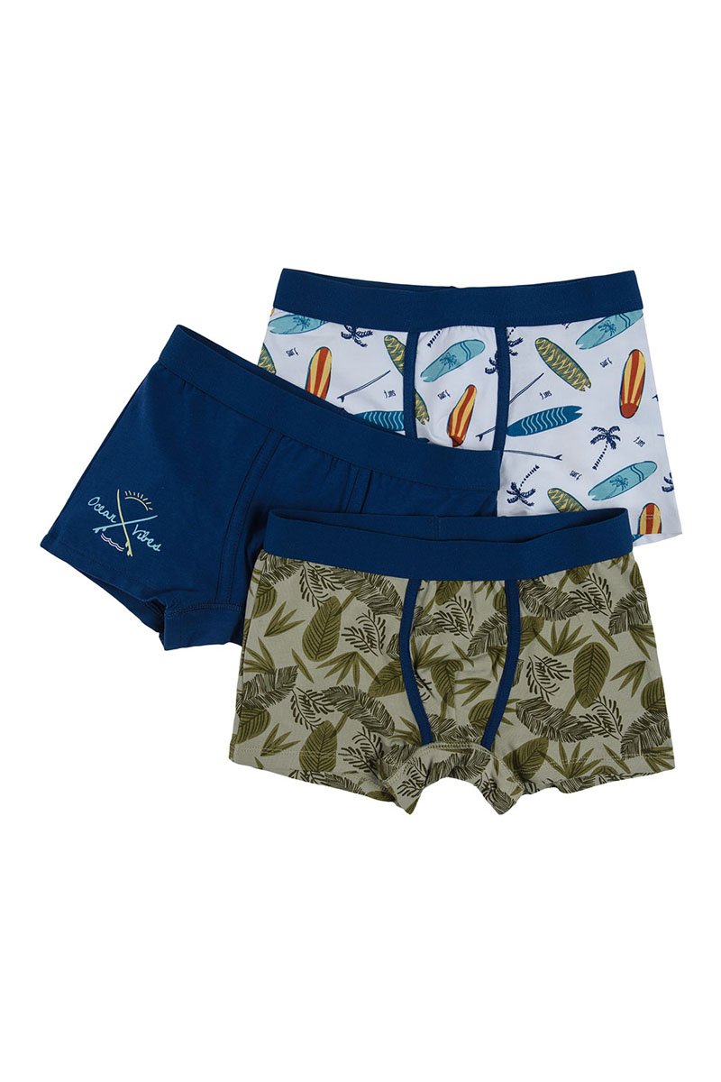 3 boxers - Bleu marine, kaki et blanc