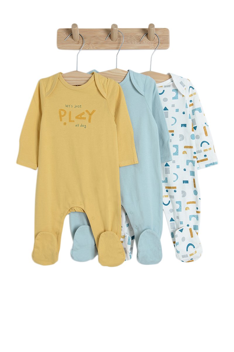 3 grenouillères - Moutarde, ciel et blanc