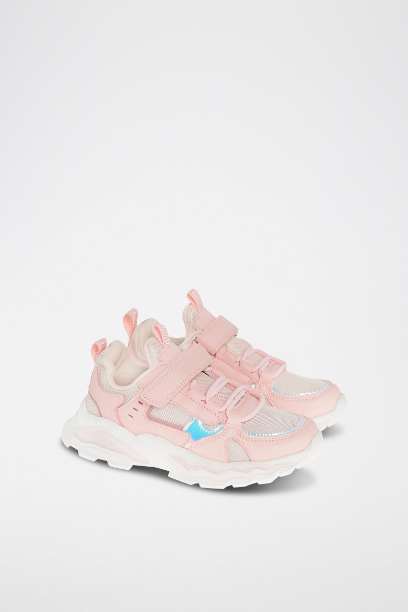 Fermeture à lacets et par scratch.