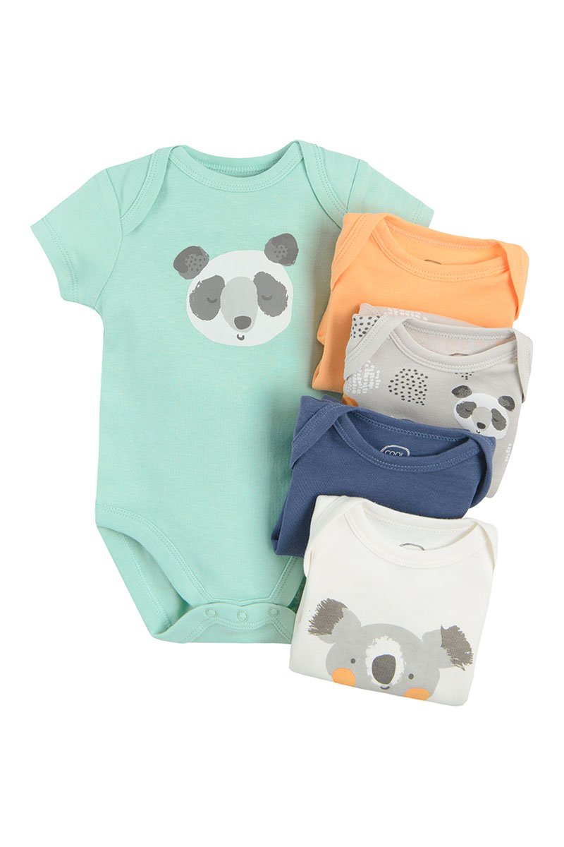 5 bodys dont 2 à motif fantaisie devant et 1 à motifs fantaisie.