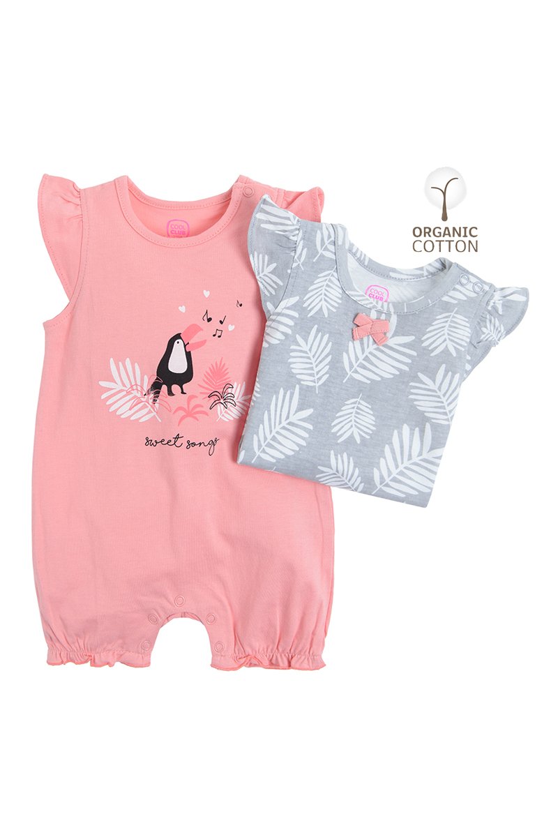 2 barboteuses en coton biologique - Rose et gris clair