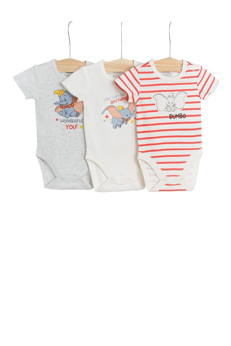 3 bodys Dumbo Dumbo Disney - Gris clair chiné et blanc