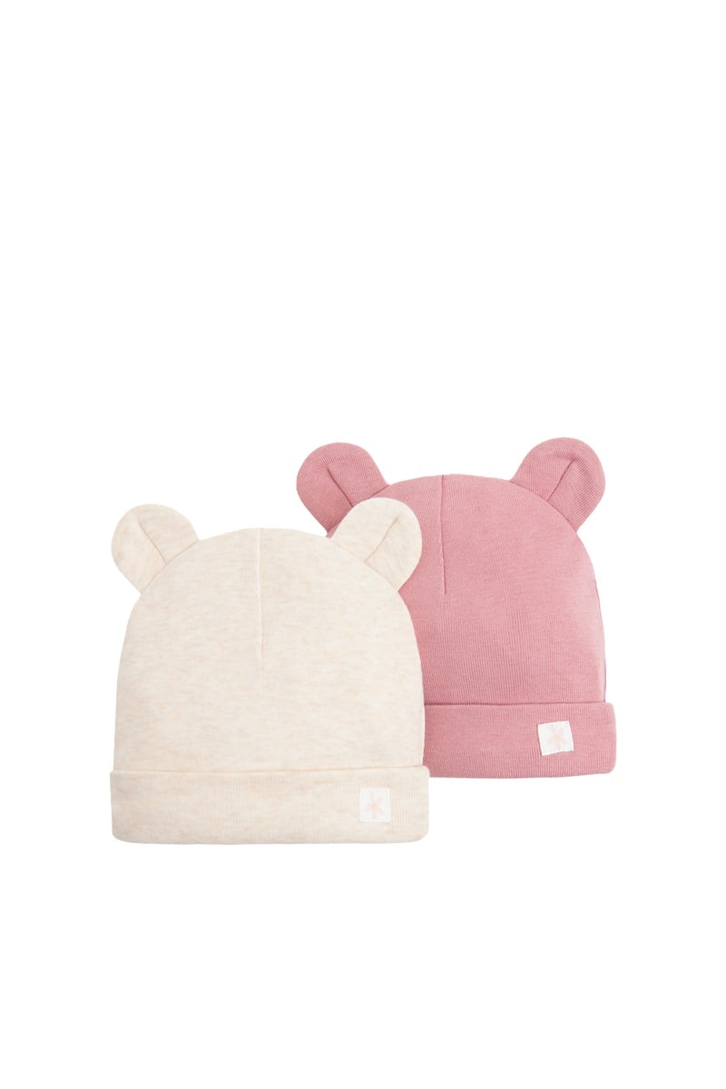 2 bonnets à oreilles - Rose et beige