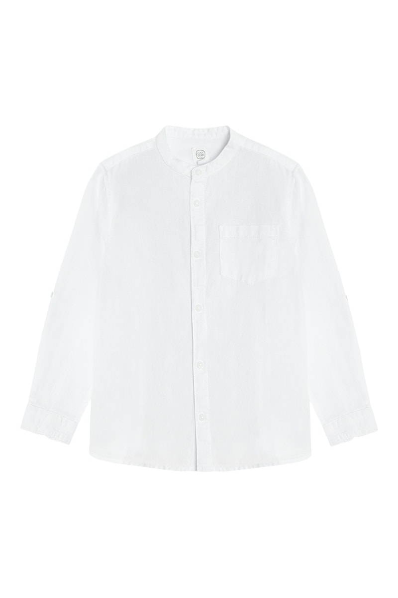 Chemise à manches longues boutonnées retroussables par patte boutonnée.