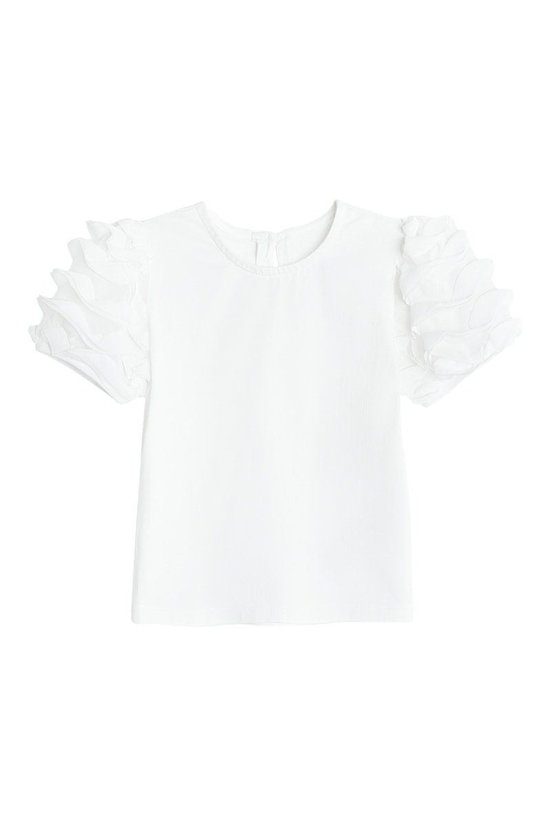 Blouse à manches courtes volantées.