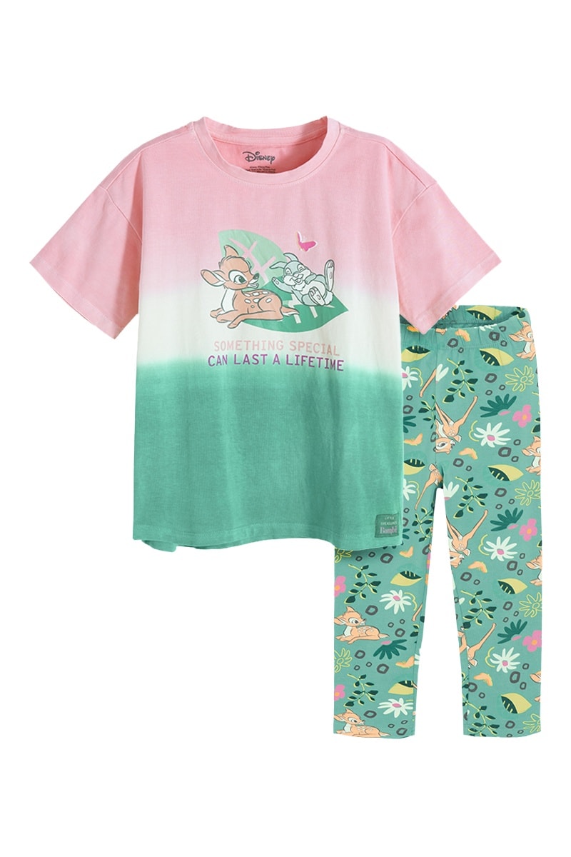 T-shirt et pantalon Bambi et Panpan Bambi Disney - Rose et vert foncé