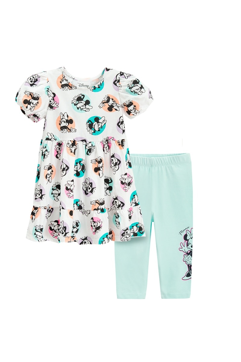 Robe et legging Minnie Disney - Blanc et turquoise