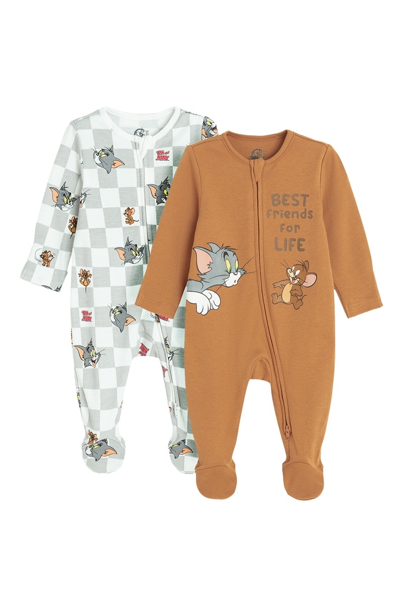 2 grenouillères Tom et Jerry - Gris clair et marron