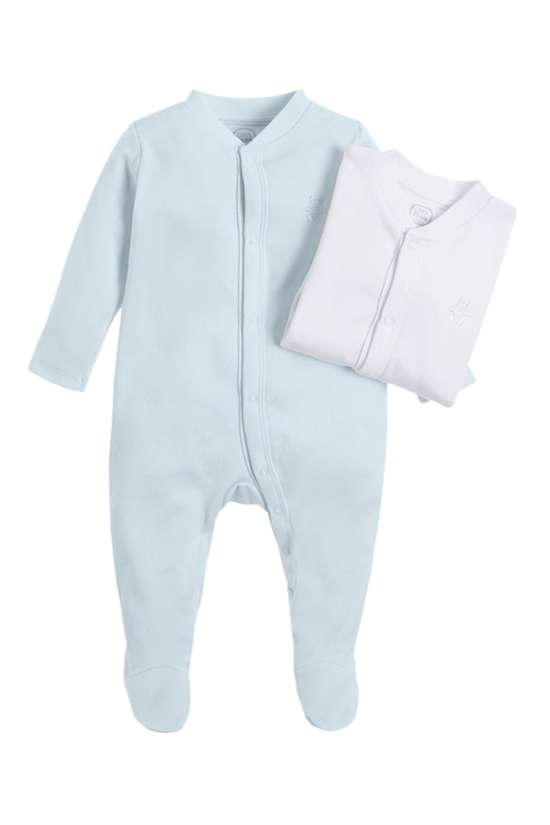 2 grenouillères en coton biologique - Ciel et blanc