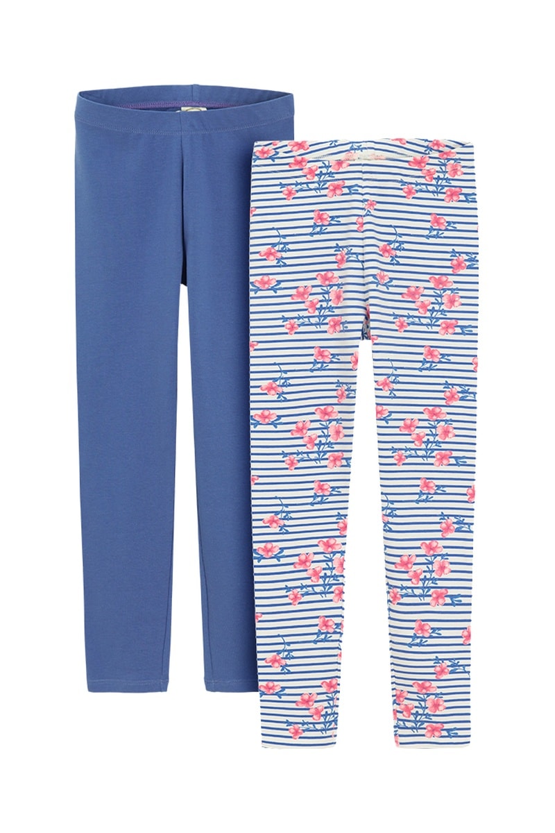 2 leggings dont 1 à motifs à rayures et fleurs.