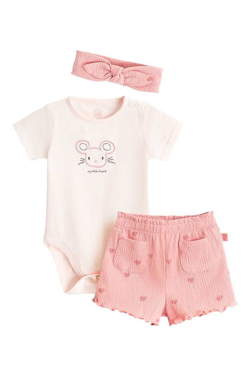 Ensemble 3 pièces - Saumon et blanc