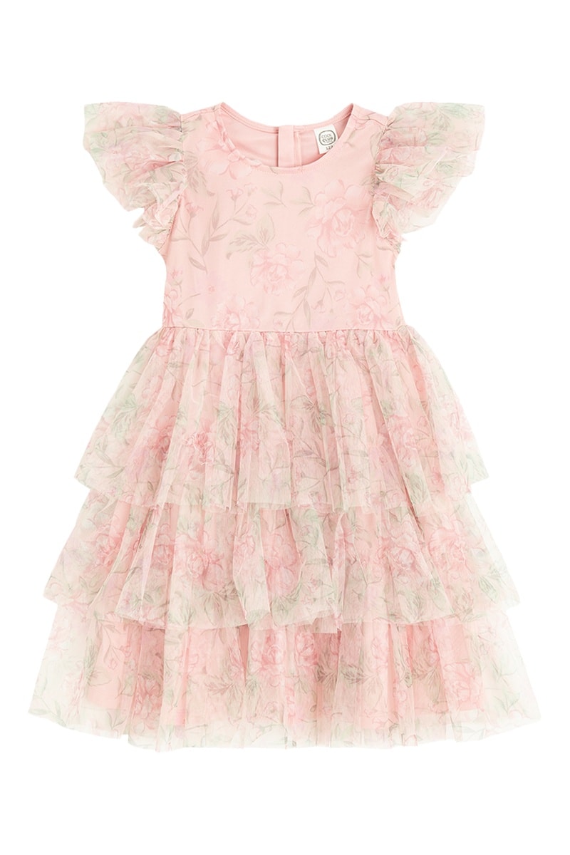 Robe volantée - Beige et rose poudré