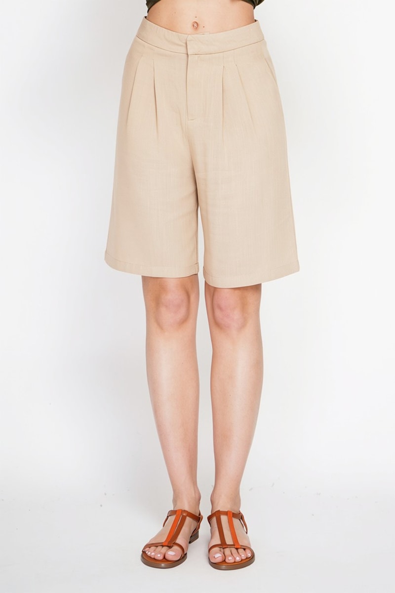 Bermuda taille haute en lin - Camel
