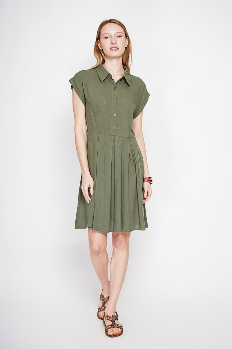 Robe patineuse en lin - Kaki