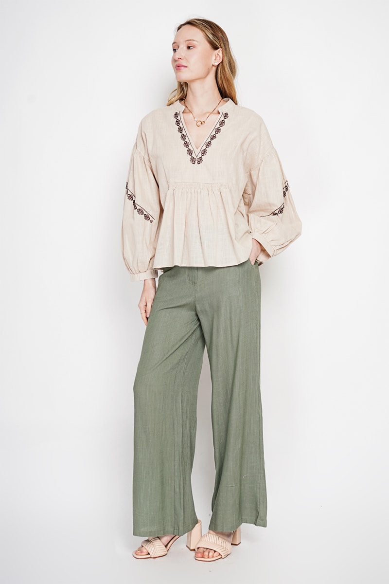 Blouse en lin - Ciel - Beige