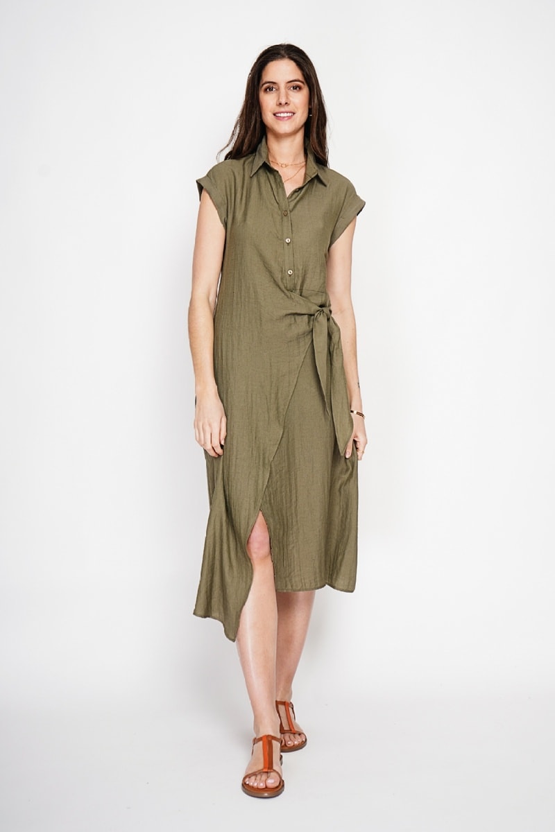 Robe portefeuille en lin - Kaki