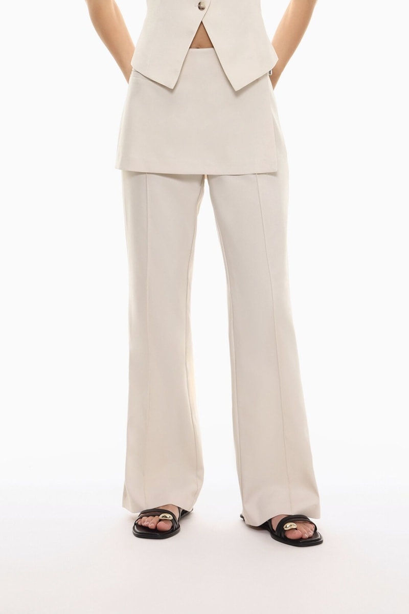 Pantalon trompe-l’œil taille haute - Ecru