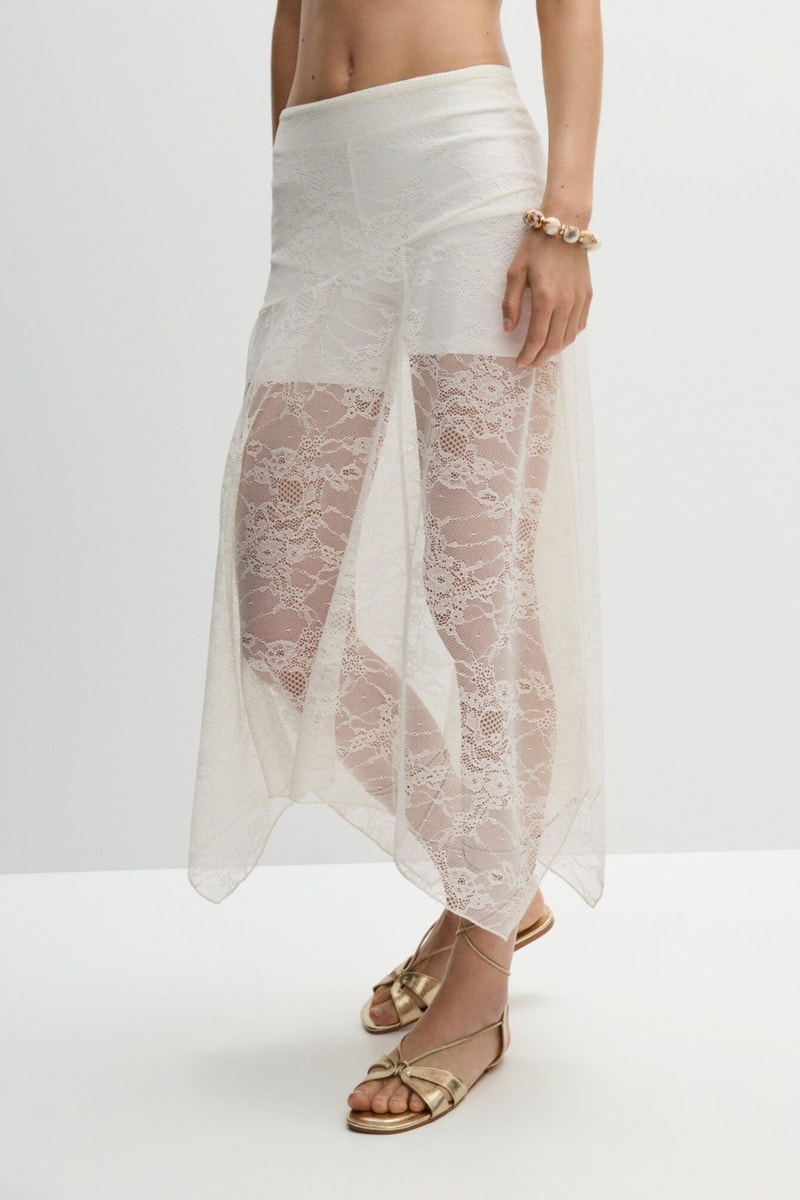 Jupe asymétrique en dentelle.