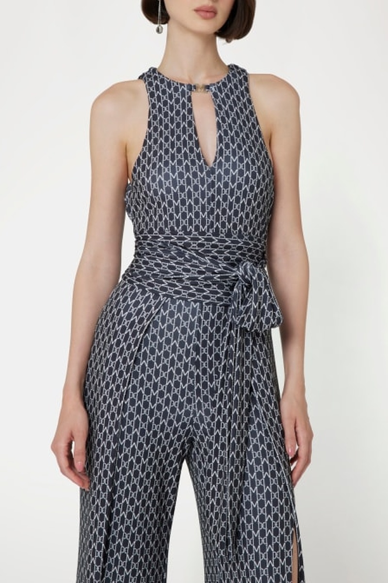 Décolleté avec empiècement en métal et fermeture zippée au dos.