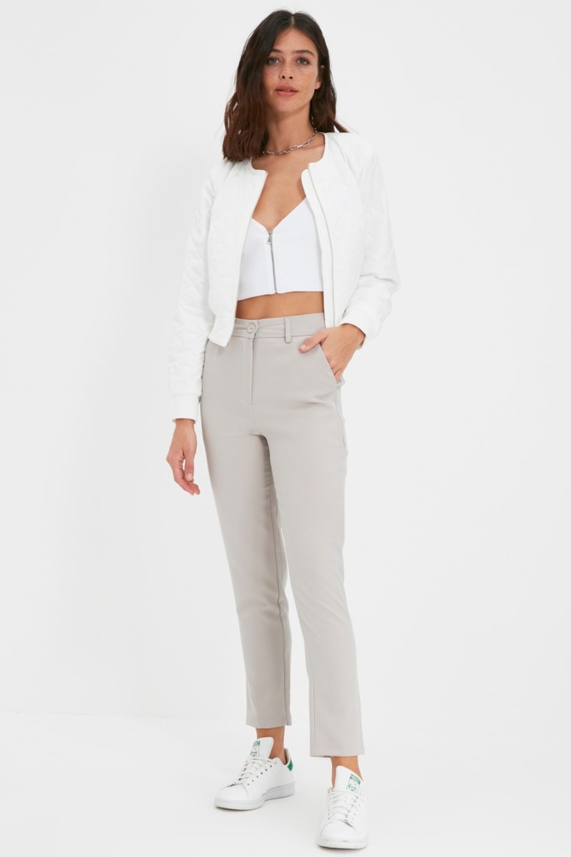 Pantalon cigarette 7/8 taille haute - Gris clair