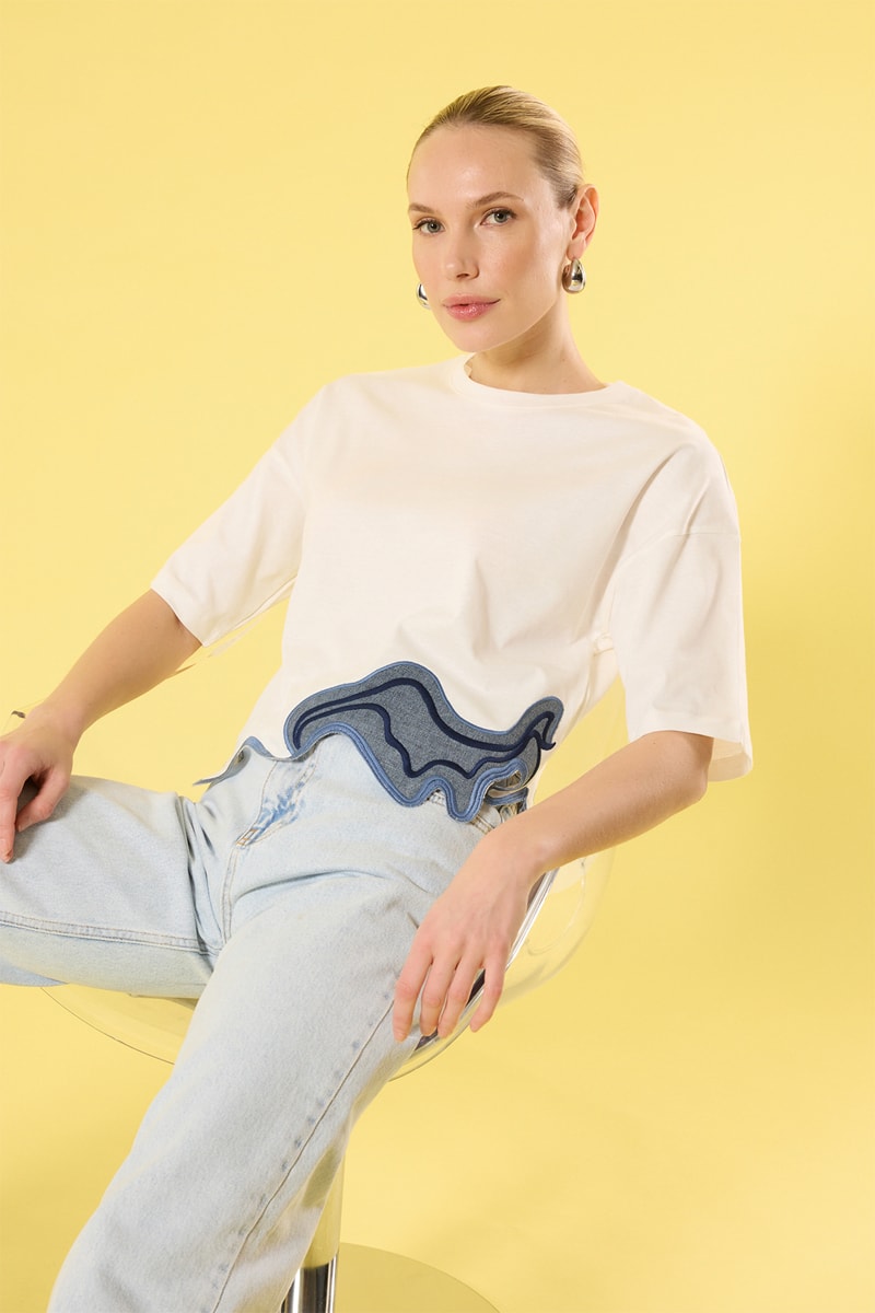 Coloris : écru, gris foncé, bleu clair et bleu marine