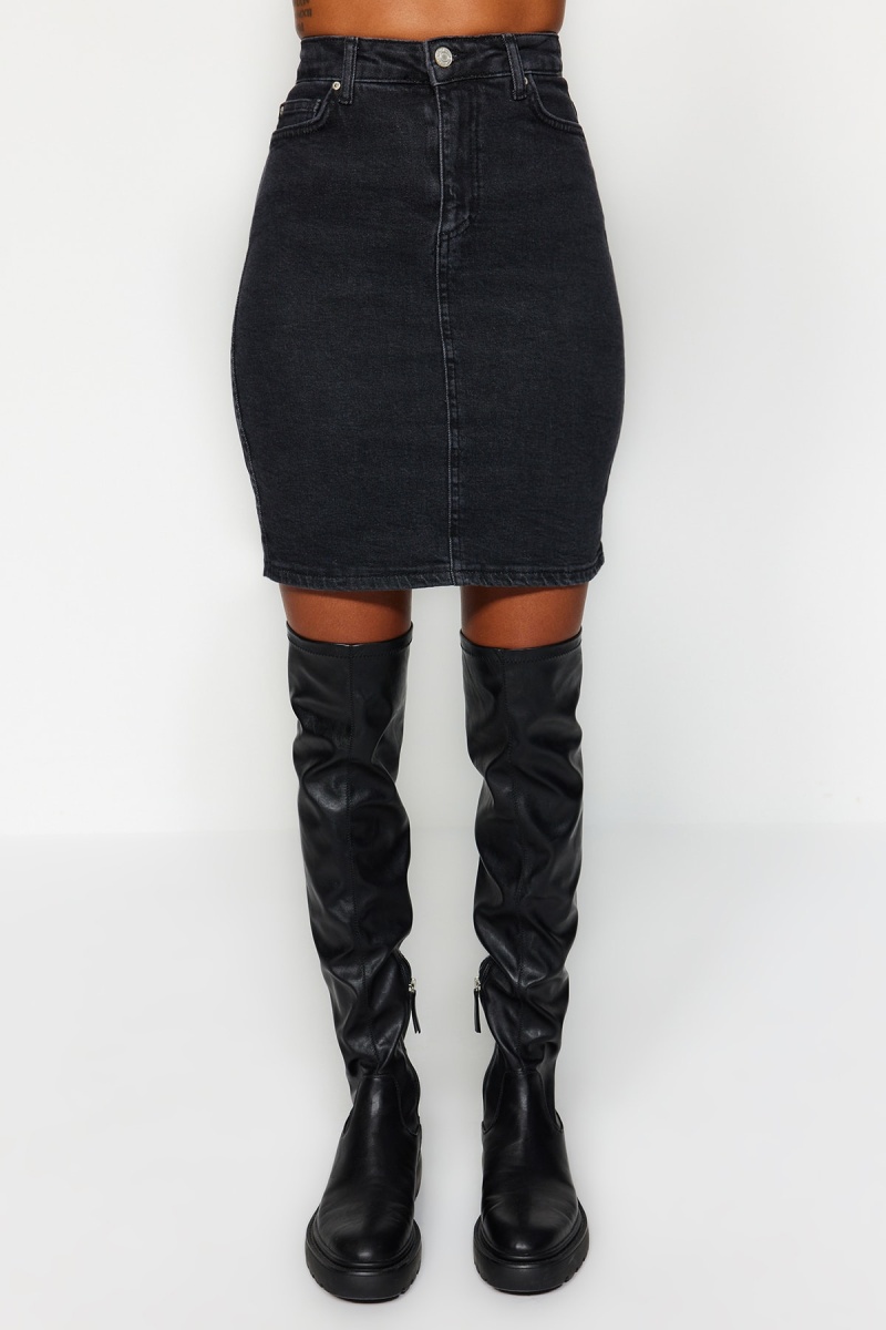 Jupe droite en jean taille haute - Noir