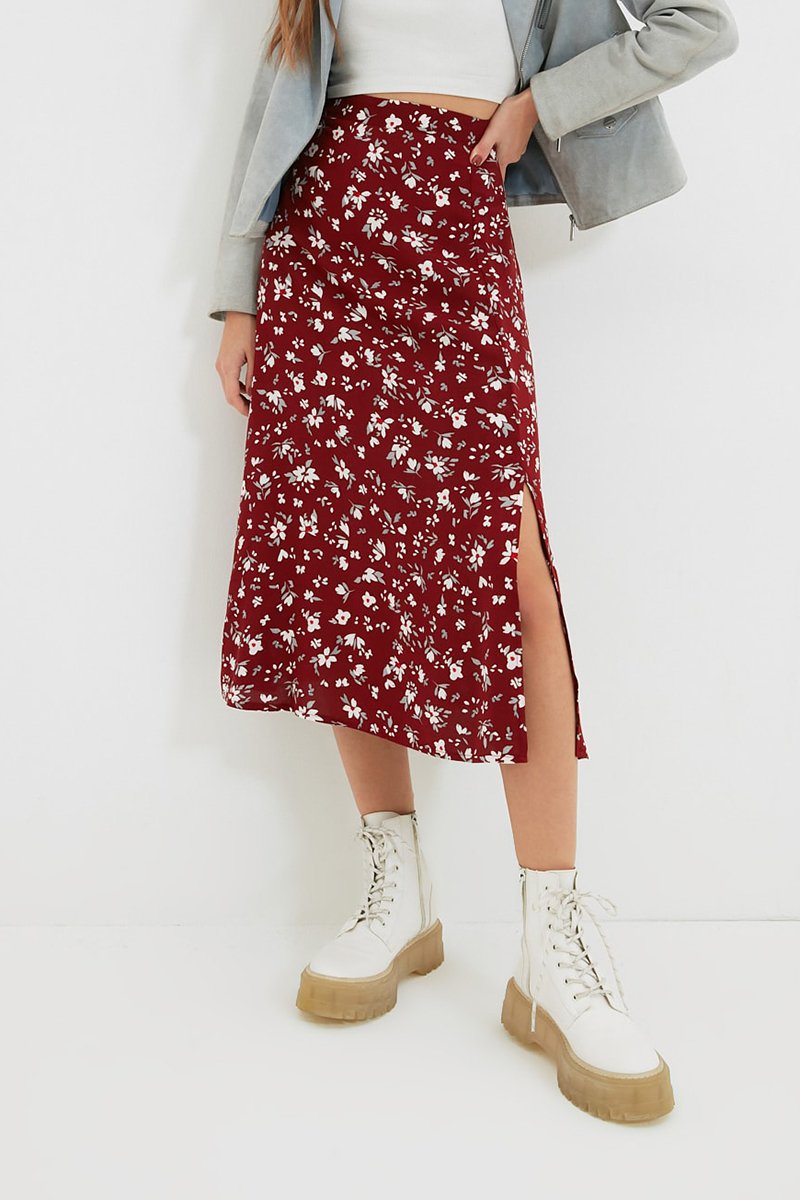 Jupe midi taille haute - Bordeaux