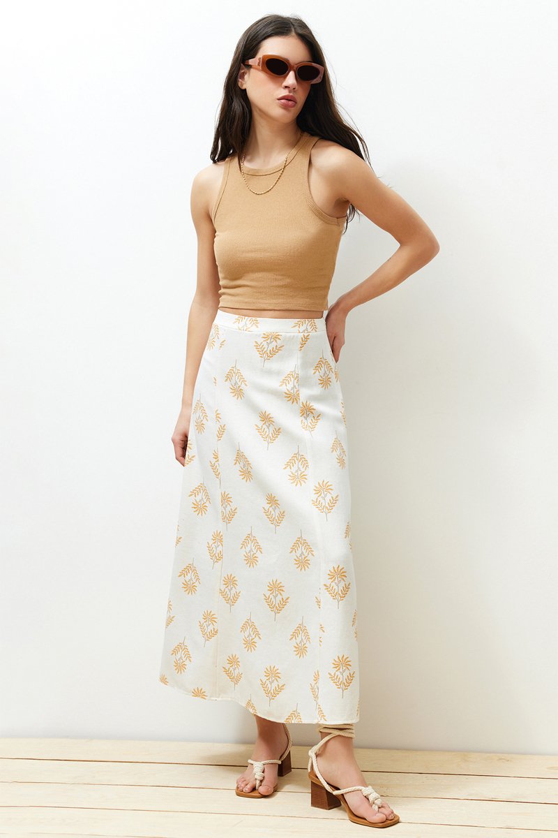 Jupe midi en lin mélangé.