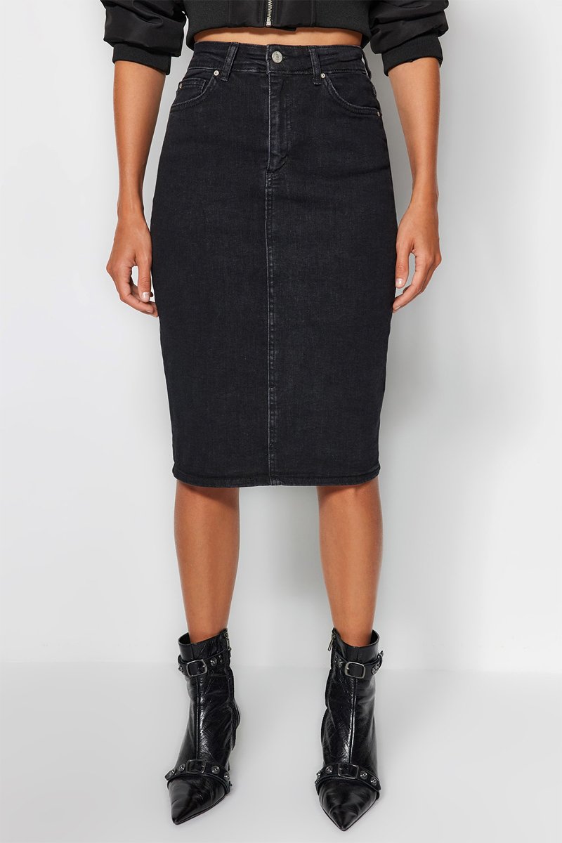 Jupe fourreau en jean taille haute - Noir
