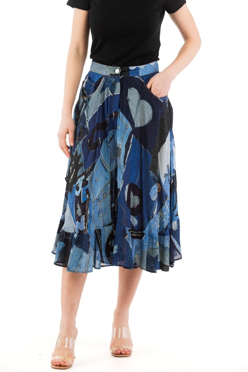 Jupe longue - Blanc, noir et bleu