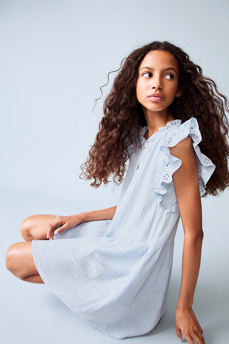 Robe brodée à volants - Bleu clair