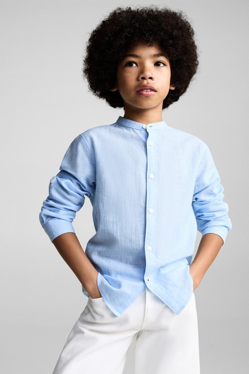 Chemise coton lin col mao.