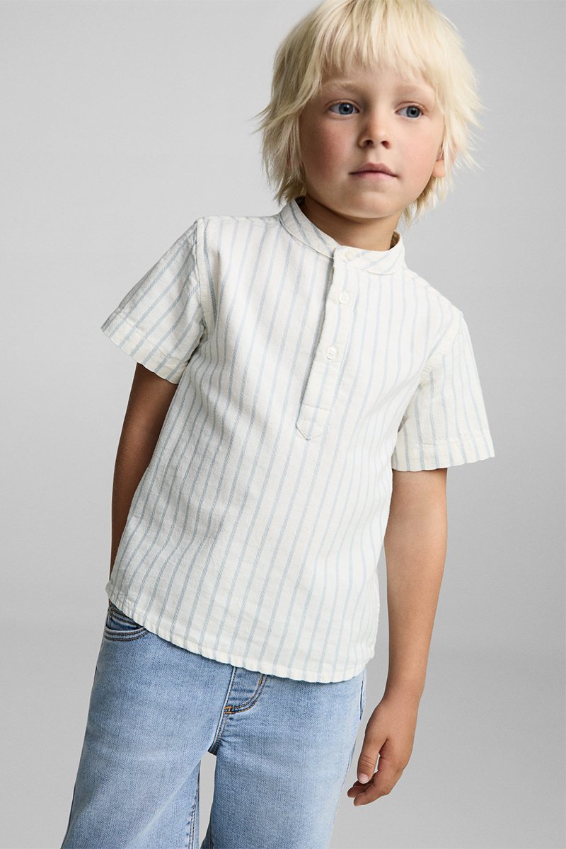 Chemise col mao à rayures.