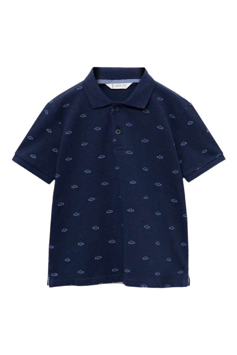 Polo coton imprimé - Bleu marine