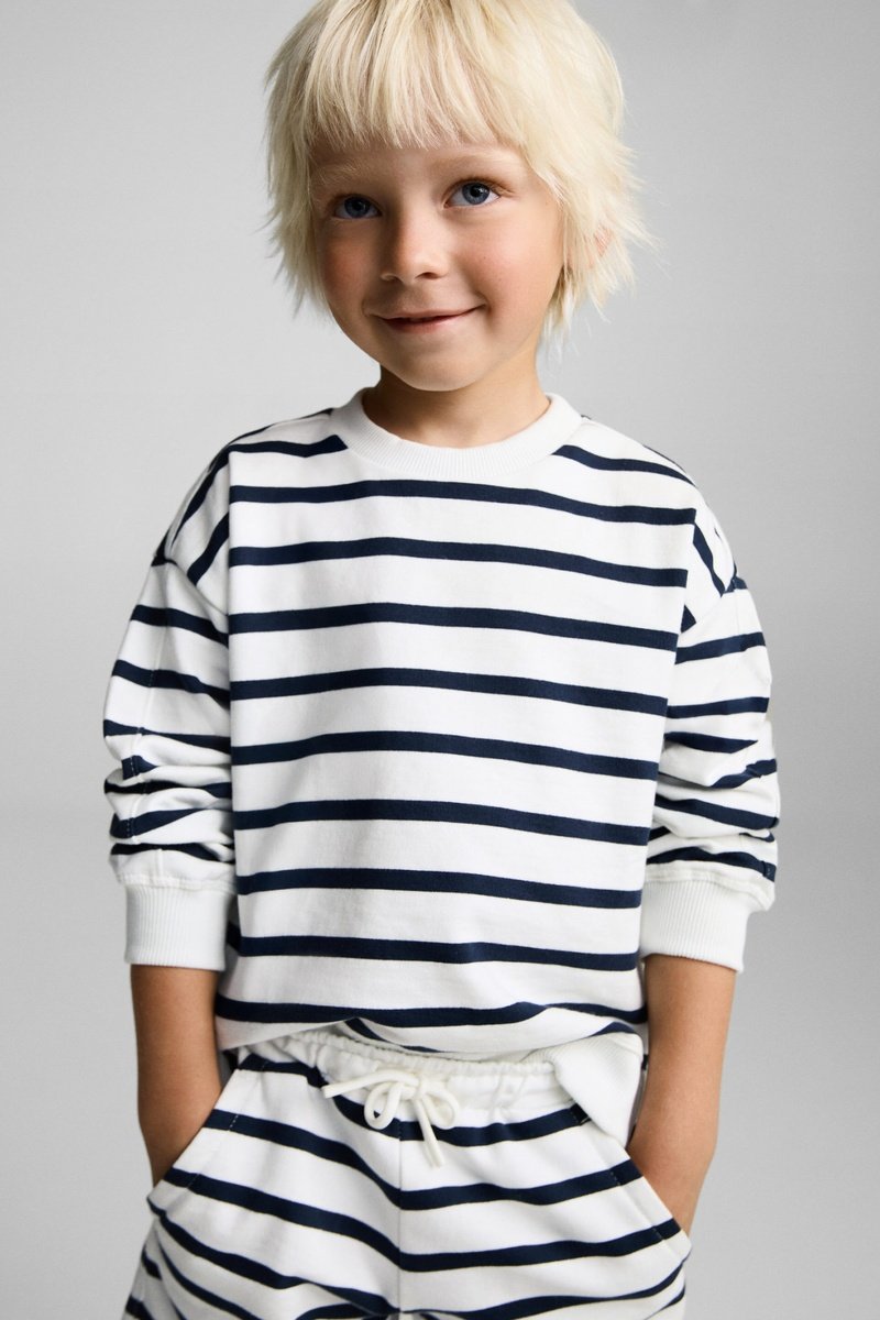 Sweat-shirt coton rayures - Bleu marine
